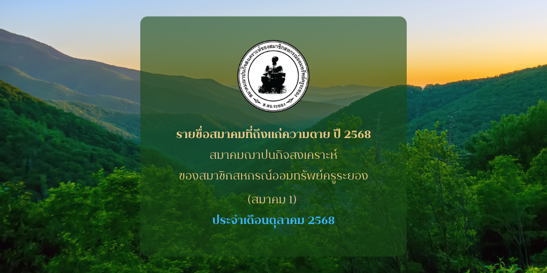 รายชื่อสมาชิกถึงแก่ความตาย ปี 2568 สมาคมฌาปนกิจสงเคราะห์ของสมาชิกสหกรณ์ออมทรัพย์ครูระยอง (สมาคม 1) ประจำเดือนมีนาคม Blog, สมาคม 1 / เมษายน 10, 2025