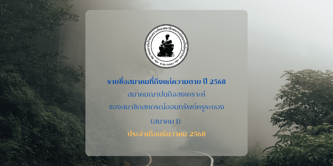 รายชื่อสมาชิกถึงแก่ความตาย ปี 2568 สมาคมฌาปนกิจสงเคราะห์ของสมาชิกสหกรณ์ออมทรัพย์ครูระยอง (สมาคม 1) ประจำเดือนมีนาคม Blog, สมาคม 1 / เมษายน 10, 2025